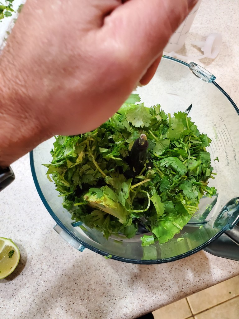 Wash your cilantro and finely chop. This is important if you want to put in to a squeezable container. If you don’t chop it fine enough, it will clog the tip and frustrate the heck out of you.