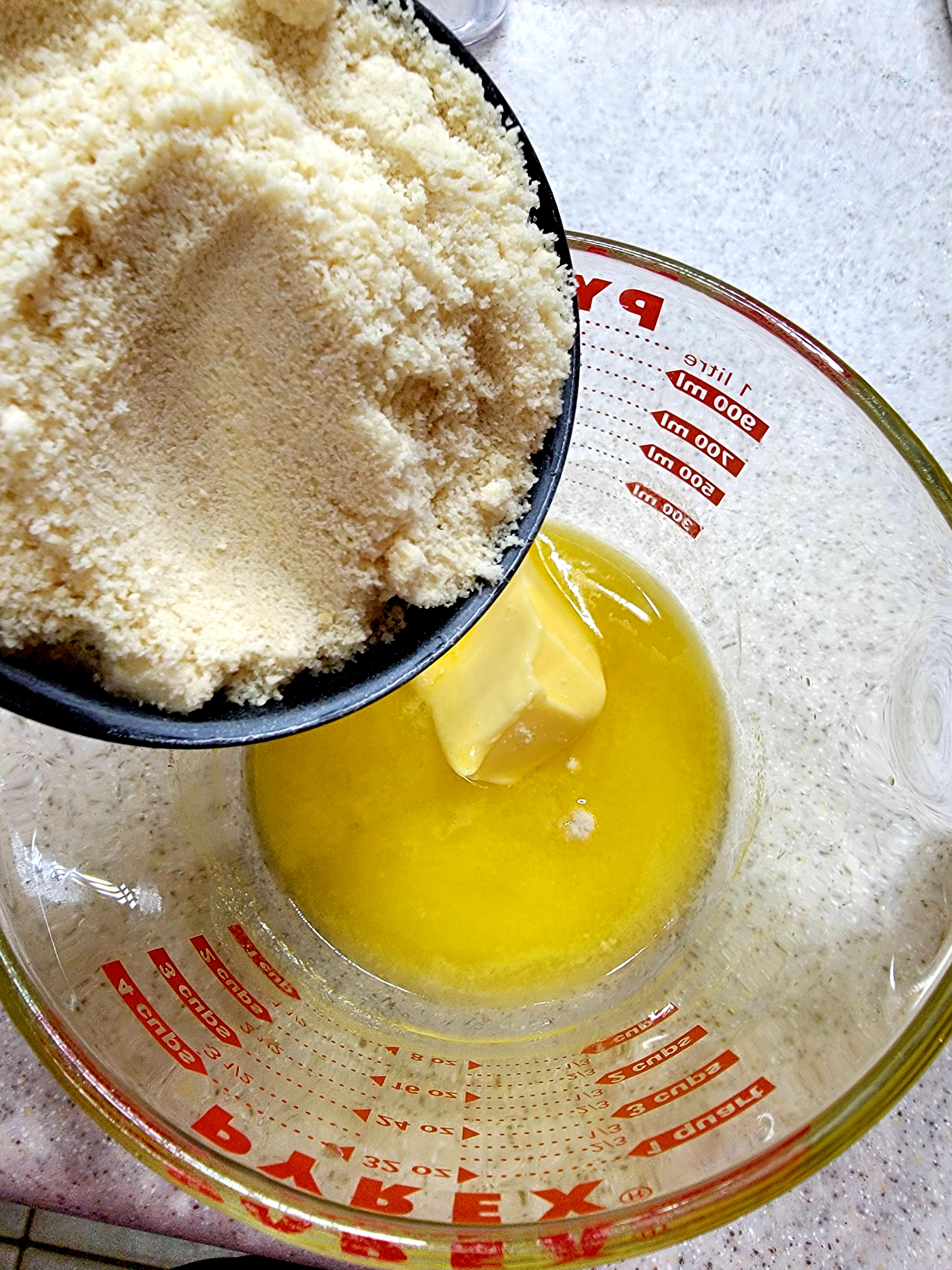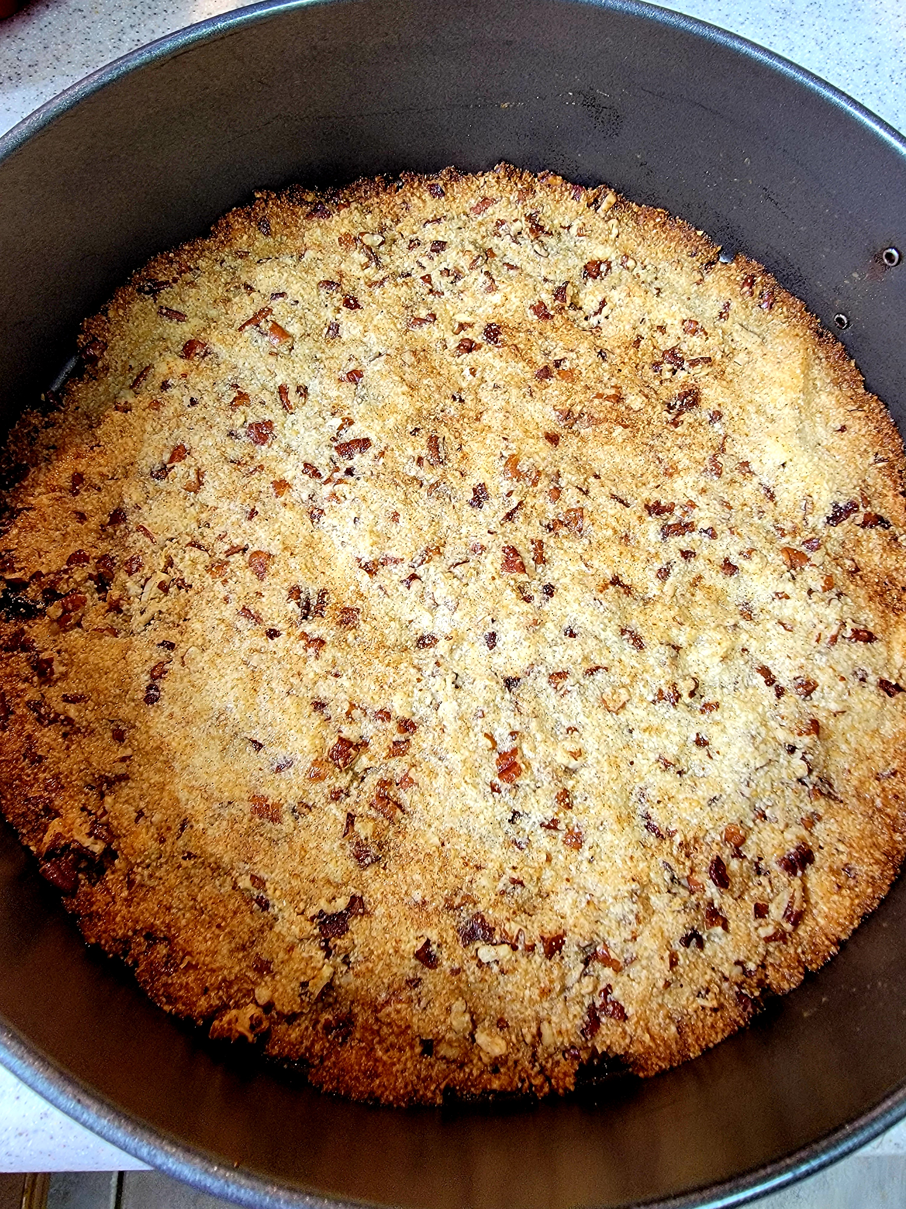 Dump crust contents into the pan and press with your hands to cover the bottom.