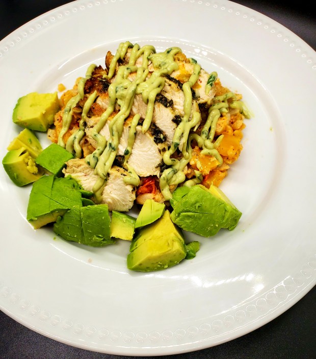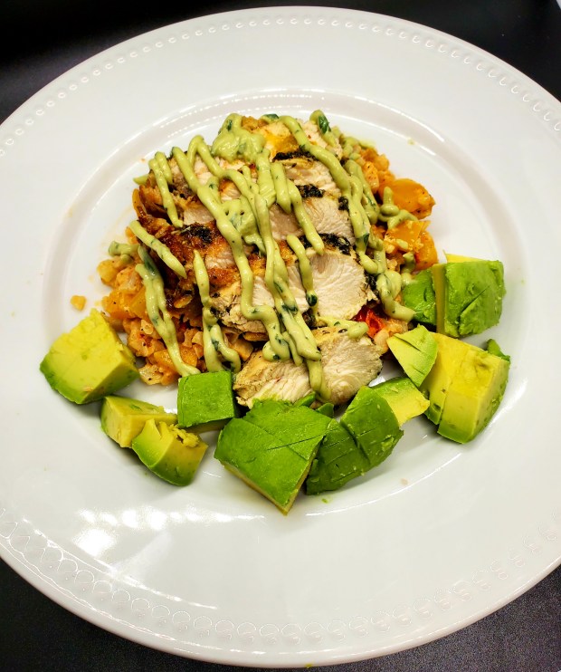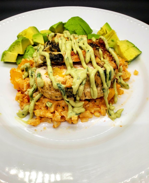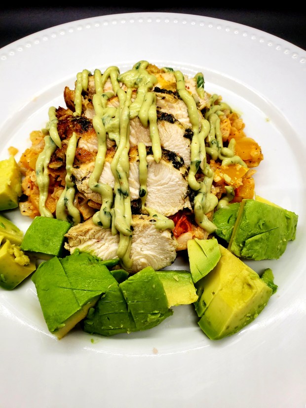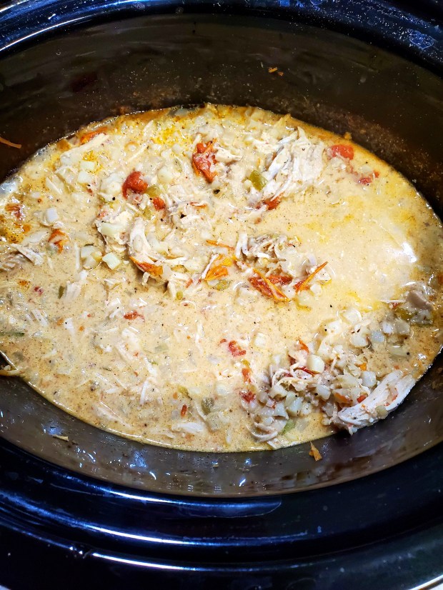 This is a close companion to the crack chicken recipe I have posted. The difference here is a little more spice and some cauliflower rice/pears. It’s so super simple since it cooks in the crock pot all day. Just come home, remove the lid, shred the chicken, and enjoy. There are so many yummy flavors in this dish!