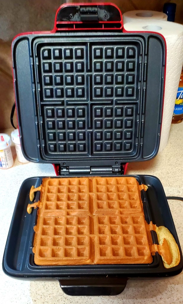 Cook the chaffle until there is no more steam. I like to open it up at this point and flip them over for another minute or two to ensure they are done.