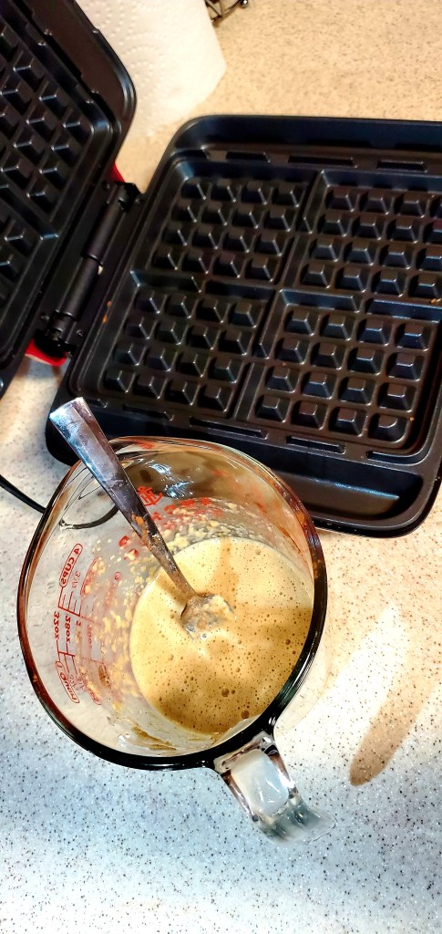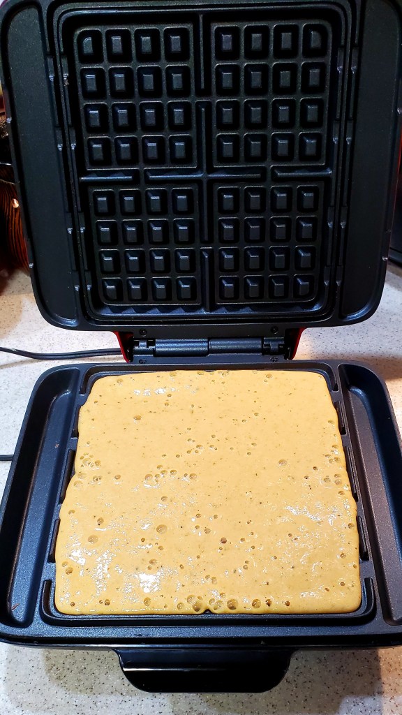 Pour your mixture into your pre-heated waffle iron. I use the Dash 4 waffle maker. It’s nice because you can double your recipe and make more than 1 chaffle at a time. You can find it here on Amazon: https://amzn.to/3a6jMDN . If you have a single waffle maker, make sure you split your batter evenly so you don’t overflow it.
