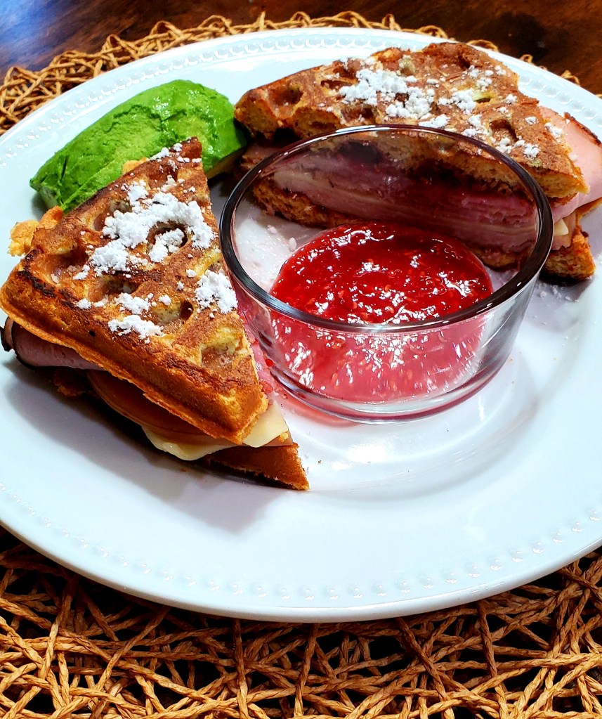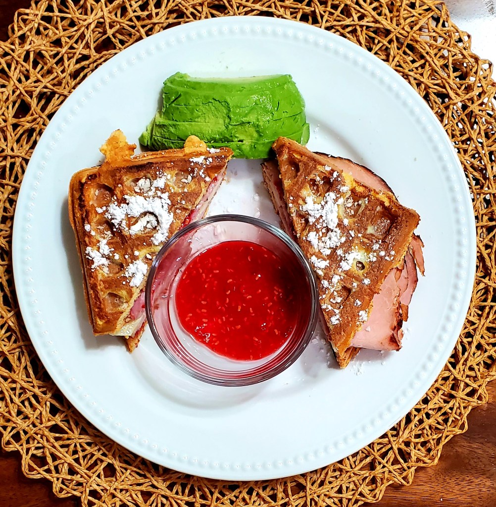 Cut your sandwich diagonally (easy to dip). Lightly dust with your Keto approved powdered sugar. You can buy it on Amazon here: https://amzn.to/3kudvGu