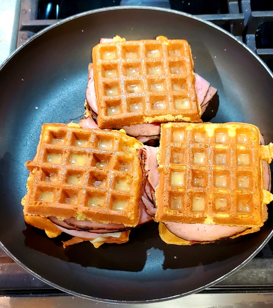 White Bread Chaffle (I double this recipe because I have a 4 way waffle griddle). If you have keto bread or PSMF bread, then you can skip the chaffle sections.