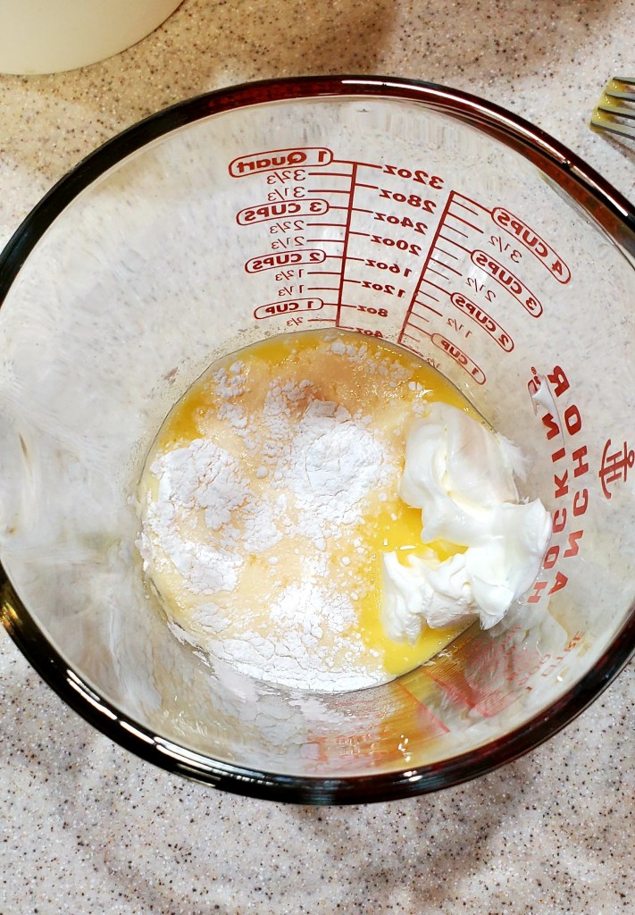 Time to make the white bread chaffle. In a mixing bowl, beat your egg.