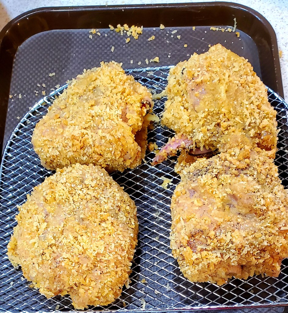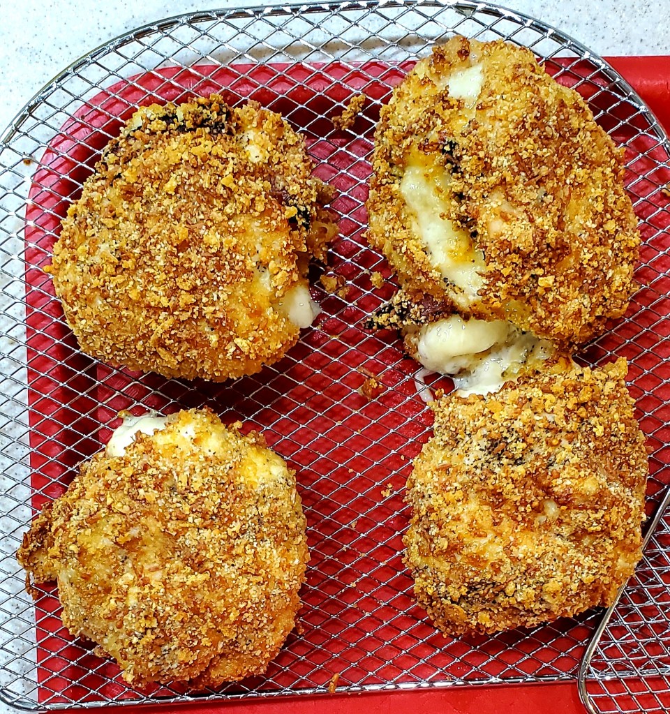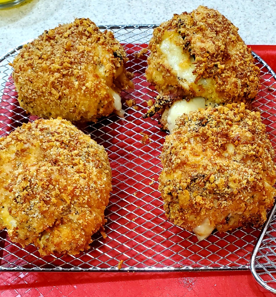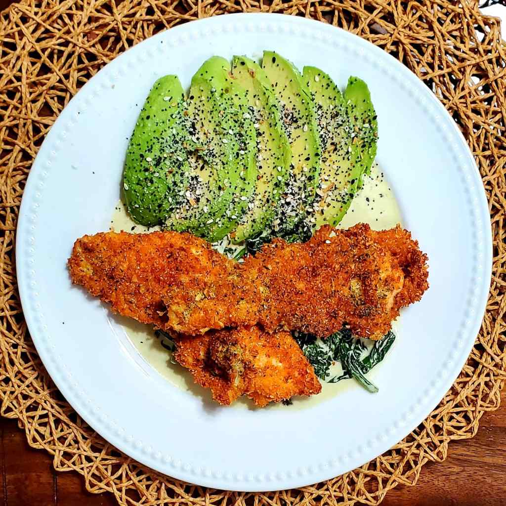 This right here is real deal. If you’ve ever had this fried delicacy at a restaurant, you would remember how oily/greasy it was. Not this version. Even better, it’s very low carb and low calories. The raspberry dipping sauce is the icing on the cake. It takes less than an hour to make. Just make sure you get all your stuff prepped and ready and it whips up in a jiff.