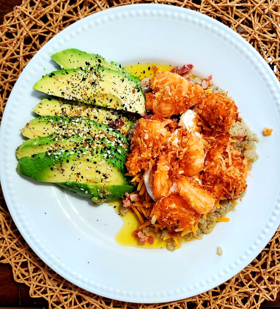 - Protein of choice (my pecan crusted chicken was chosen today)